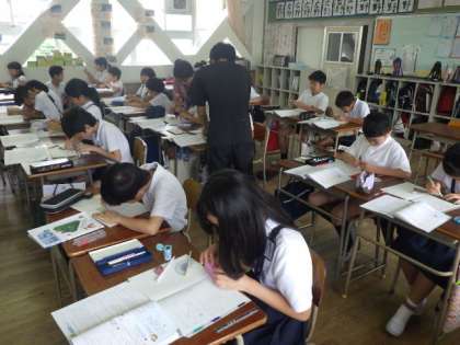 コンパスや分度器を使って作図もしています。