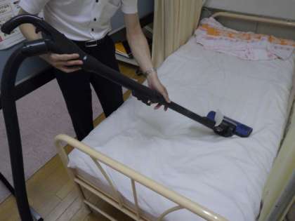 学校薬剤師の先生に来ていただき、保健室のカーペットとベッドのダニ検査が行われました。