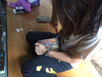 宿舎では 全ての焼きいたに 鎖をつける穴を開けています。