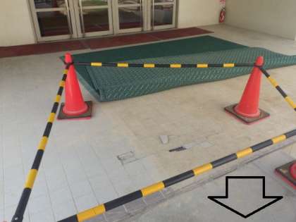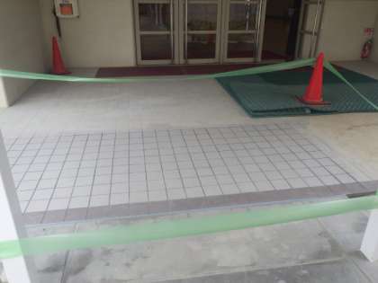 夏休みに入り、割れてしまった講堂前のタイルを補修しました。