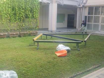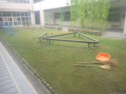 夏休み期間中、伸びていた中庭の草を管理作業員さんが刈ってくれました。