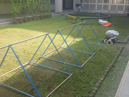 程よい長さの芝生の長さになり、中庭も子ども達が元気に遊ぶのを待っているようです。