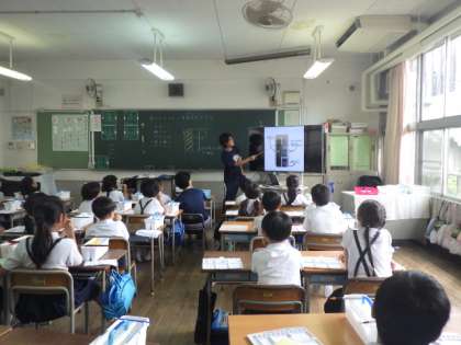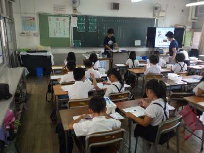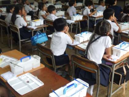 昨日の1組に続いて2年2組では初めての絵の具です。