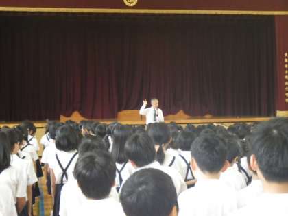 校長先生からは玄関で元気な挨拶ができていたことと、日曜日に松島グラウンドで行われた41回目のPTAソフトボール大会の話がありました。眞鍋先生、村尾先生も参加し、一人ひとり、またチームとして頑張っていたお話がありました。