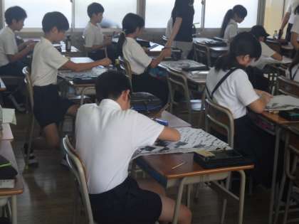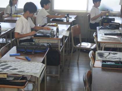 今日はいろいろなものを使って描いたり、墨に濃淡をつけたりしました。