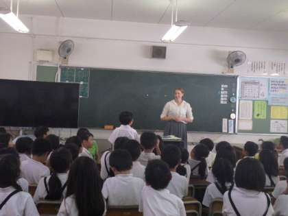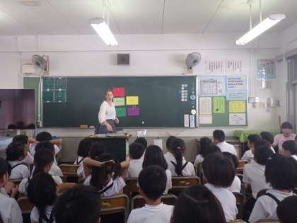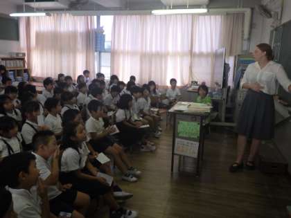 明治小学校では低学年から英語の慣れ親しむという事で定期的に外国語活動の授業を行っています。