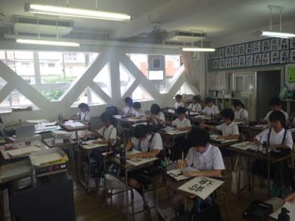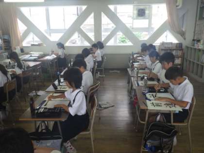 しんにょうを練習しました。みんな真剣に丁寧に書いています。