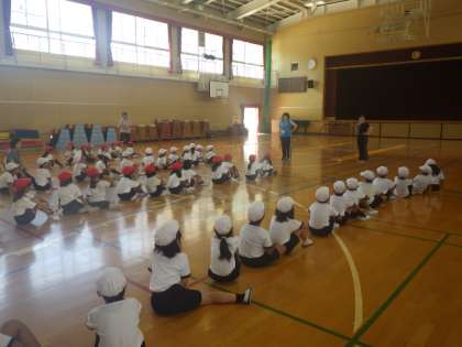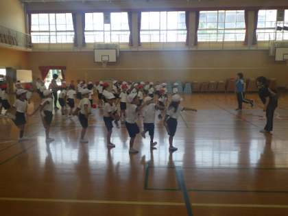 体を動かした後の整理運動です。使った筋肉をしっかりとほぐします。