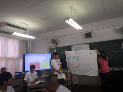 講師の先生をお招きして、全教員が参観した授業をもとに指導の仕方を学びました。