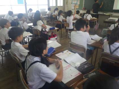 友だちの意見を聞きながら、自分の意見との違いを考えています。