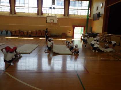 学習の終わりには自分たちでしっかりとマットを片付けています。