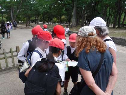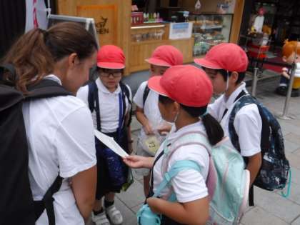 遠足では今まで学習してきた英語を使って外国の方と話してみる活動をしました。