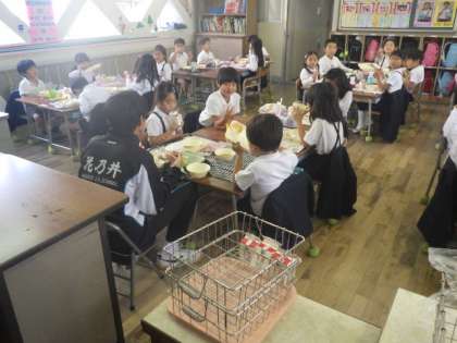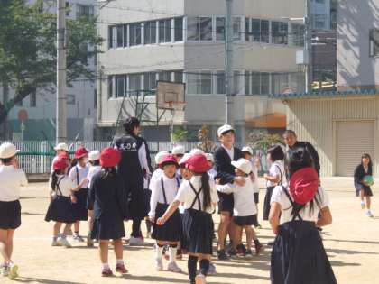 給食は1年生と一緒にお弁当を食べ、休み時間は子ども達と楽しく遊んでいます。