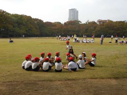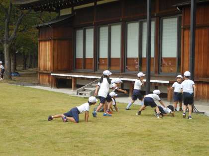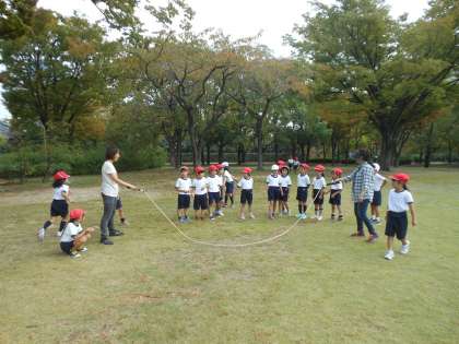 西の丸庭園でお弁当を食べた後、縄跳び、