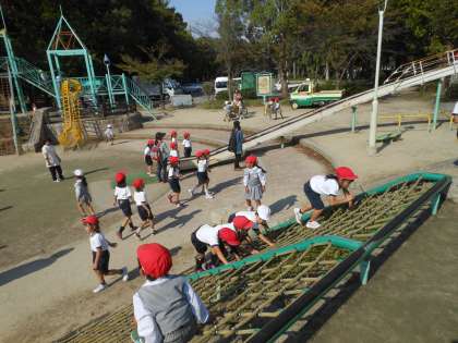 近辺の遊び場で、遊具等で体を動かしました。