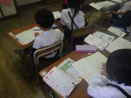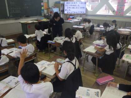 文章題に挑戦です。練習問題ではみんなのノートを確認しながら、学習の定着を確認しています。