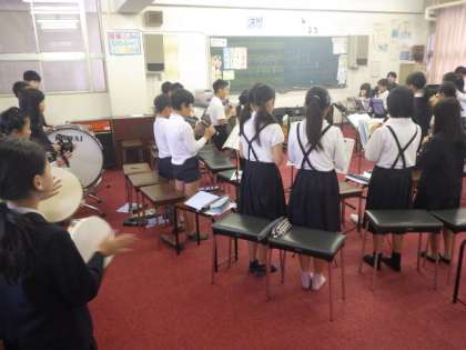 合奏の練習です。 リズムをしっかりととりながら、演奏しています。
