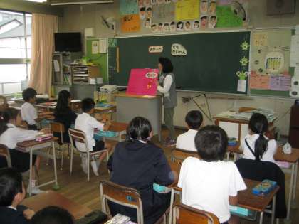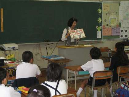 読み聞かせゲストに土井先生が、4年1組に来てくれました。