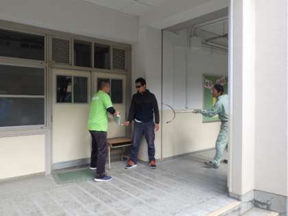 東門から不審者が侵入したという想定で避難訓練を行いました。