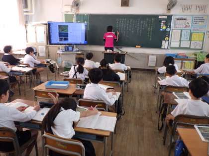 学習のまとめを板書しています。