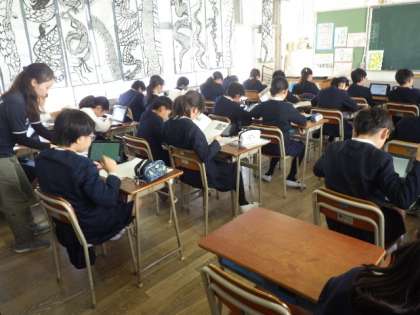 タブレットを使い、調べたことを新聞にしています。