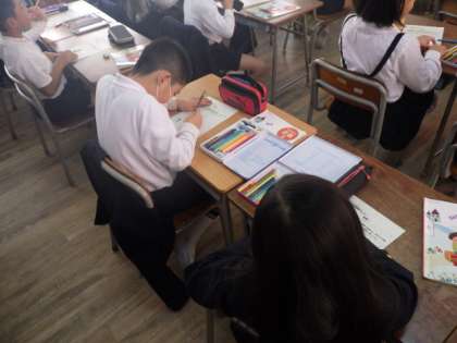 音楽を聴いて、文字や絵で自分なりの表現をしています。