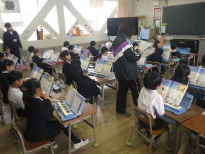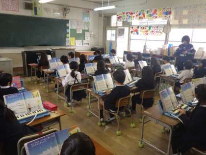 鍵盤ハーモニカのテストをしました。上手に弾けたかな。