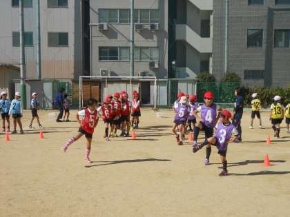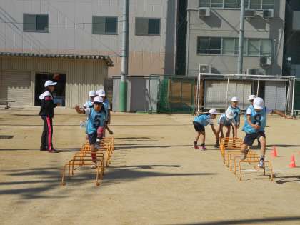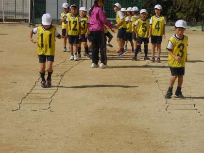 (かかとを、お尻の方に蹴り上げながら走る)」