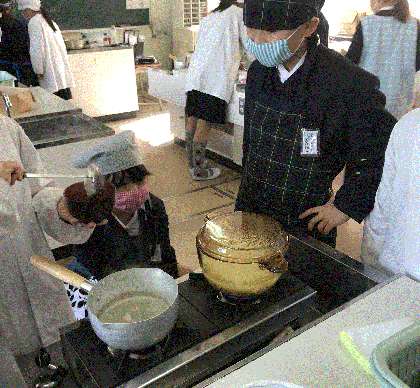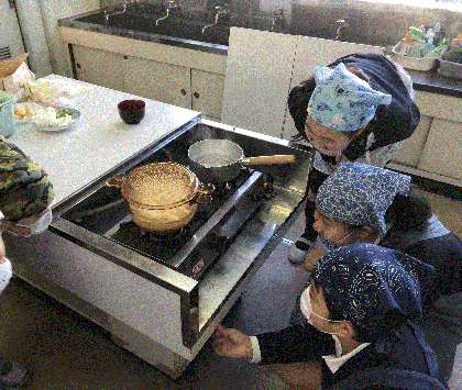みんなで協力しながら、ごはんとみそ汁を作りました。