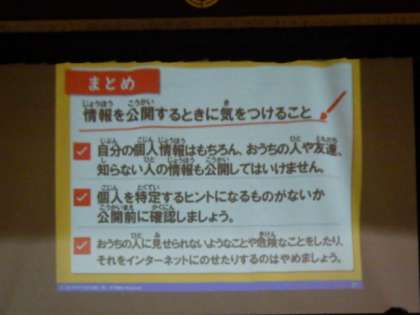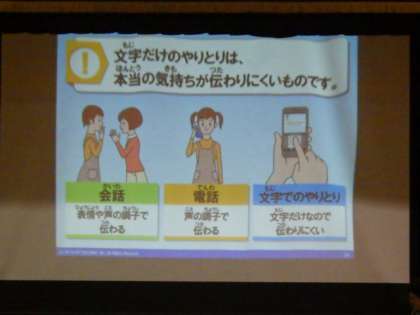 本校では5年生で携帯電話やスマートフォンの安全な使い方について、NTTに来ていただき、指導しています。