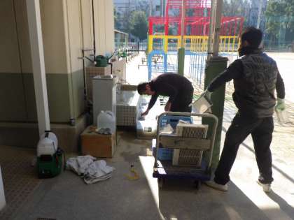 業者による空調機の清掃が行われました。