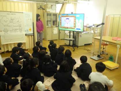 今日の1年生では発育測定の後、たばこの害についてのお話が中井先生からありました。