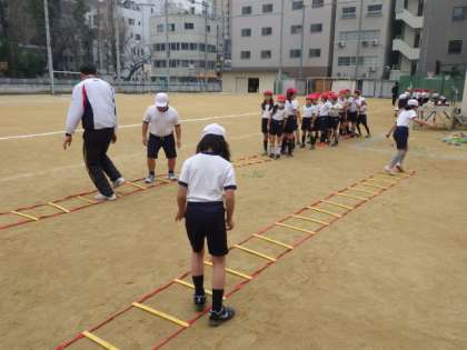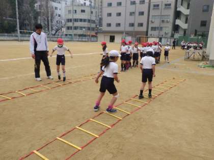 3年生は体育をしました。なわとびやラダー運動をしました。