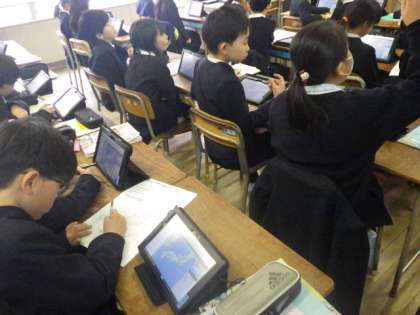 タブレットを使って、各自で調べ、大阪府とのつながりを考えました。