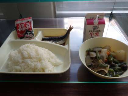 今日の給食では、節分の行事献立として「いわしのしょうがじょうゆかけ」と「いり大豆」がでました。