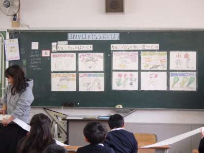 九条東から栄養教諭の南浦先生にきてもらい、栄養指導がありました。