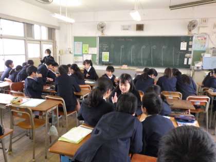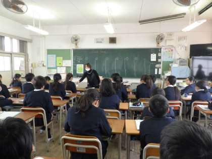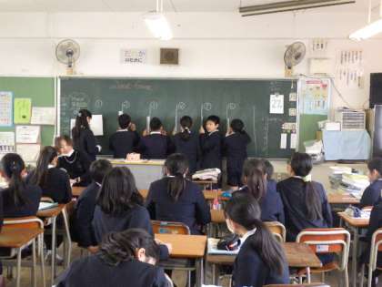 花乃井中学校の英語教諭の先生、馬渕先生と一緒に外国語の学習です。