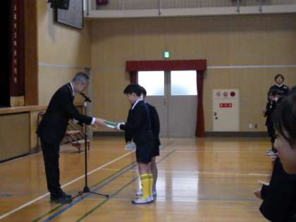 校長先生から、頑張った個人の表彰の後、サッカークラブの表彰がありました。
