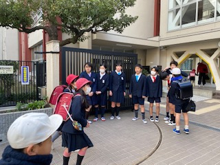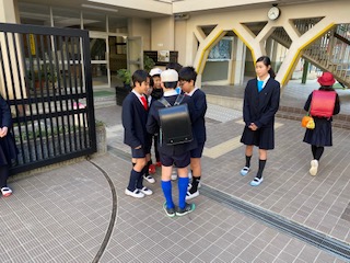 健康委員会児童が朝、正門でみんなの「つめ」をチェックし呼び掛けています。