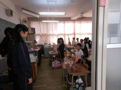 11月12日(水)、13日(木)の二日間、職場体験で花乃井中学校の2年生が来てくれました。作品展の準備や校内の清掃などの作業に一生懸命頑張っていました。授業中は先生のお手伝いをしたり、休み時間には子どもたちとドッジボールや大縄をして遊んだりと、一日先生となり、子どもたちも大喜びでした。この二日間で学んだことをこれからの生活に生かしていってほしいと思います。