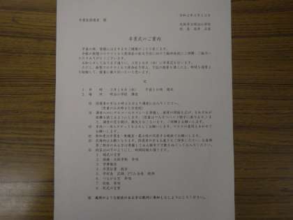 ・6年生児童は8時45分に登校、開式10時とします。保護者の方は9時45分より講堂にお入りください。