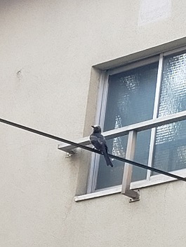 5月 皐月(さつき)となりました。太陽のもとで体を動かすと、汗ばむような陽気です。明治小学校の教材池周辺でも、赤と白のツツジの花が満開へと向かっています。教材池に水浴びにやって来た小鳥が、電線の上で羽を休めていました。