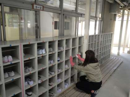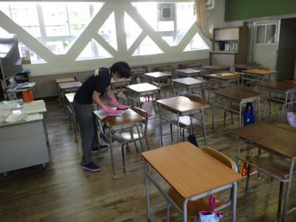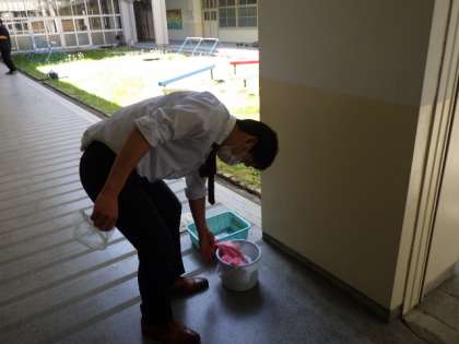 学校では、各教職員が分担して、児童の入れ替わり時に児童が特に触れる場所を中心に消毒をし、児童下校後は、児童が使った場所を念入りに消毒をするようにし、感染症予防対策を行っています。