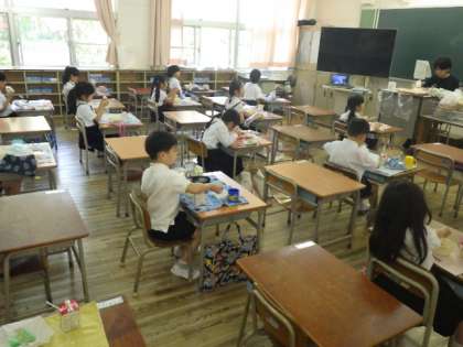 今日の給食はパンと牛乳、マーボーはるさめです。