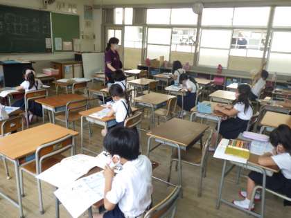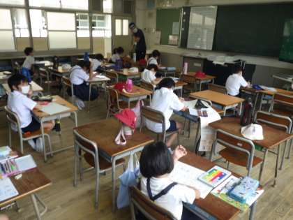 書写の学習です。見本を見ながら、ゆっくりと丁寧に書けています。