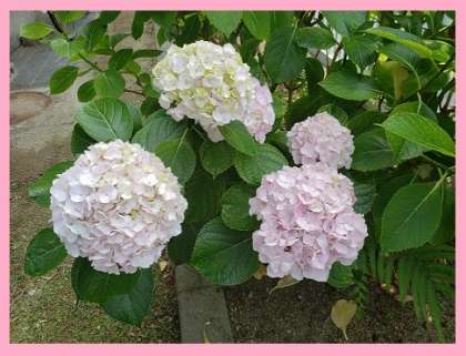 アジサイの花は、花の咲く場所の土によって花の色がちがうと説明しました。その時には白に近かった花の色が下の写真のようになりました。