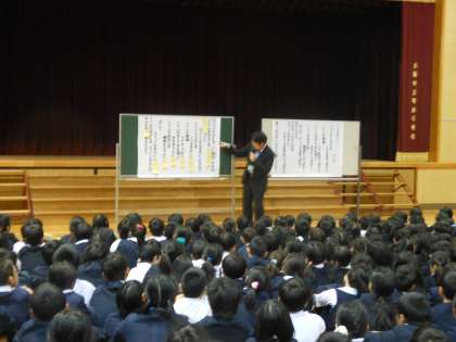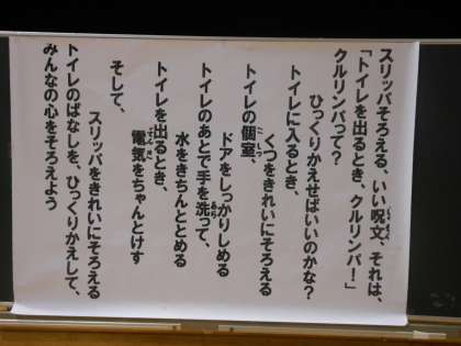 教頭先生から、「トイレで守ること」を例えて「トイレのぱなし」の