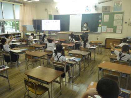 1年生も学習時のきまりを覚え、手をあげ意見を発表することができています。