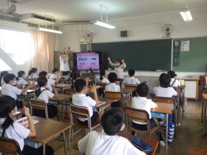 今日は5,6年生で外国語の授業が行われました。
