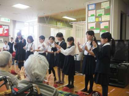 折り紙をプレゼントしたり、あやとり、合唱・リコーダー